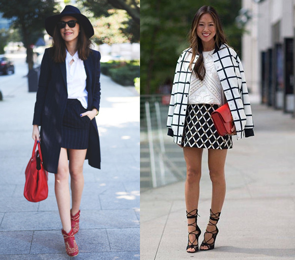 Cặp đôi không bao giờ lỗi mốt đen – trắng sẽ tuyệt vời hơn khi được nhấn nhá thêm bằng chiếc túi màu đỏ lôi cuốn.
