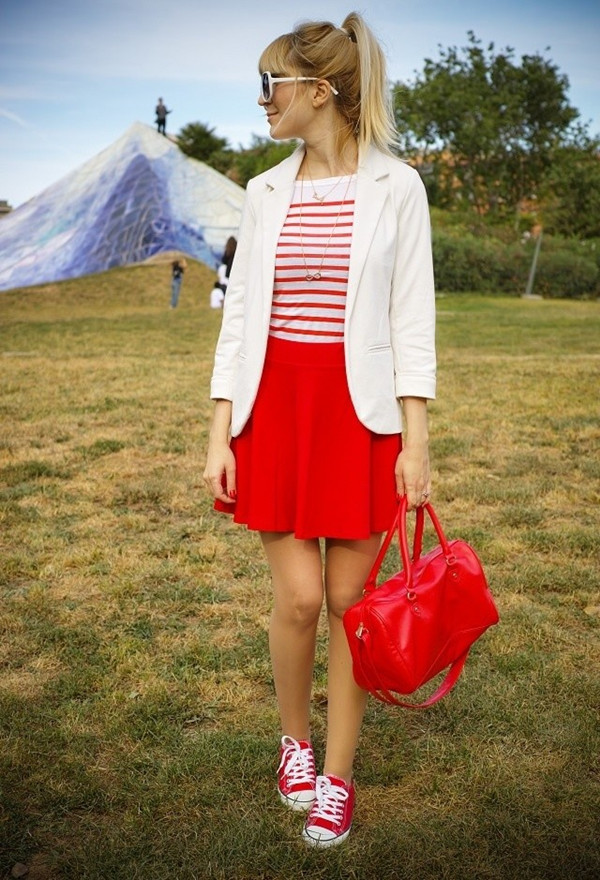 Gam đỏ dành cho những cô nàng thích bạn luôn là tâm điểm. Để thêm tự tin đối với cá tính thời trang độc đáo của mình, hãy mix cùng túi đeo chéo hàng hiệu màu đen, trắng hoặc đỏ. Tránh phối cùng những tông nổi bật khác như xanh, cam, vàng… màu đỏ rực rỡ của quần áo sẽ khiến cả bộ trang phục thiếu hòa hợp.